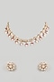 Featuring a 22kt gold plated necklace studded with ruby beads, pearls and kundan polki, set in mixed metal. It is paired with a matching pair of earrings. Perfect for wedding celebrations, festive soirees or cultural gatherings adding a regal charm to every look.
