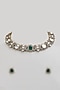 Featuring a two-tone finish necklace studded with kundan polki, emerald synthetic stone and crystals, set in mixed metal. It is paired with a matching pair of earrings. Perfect wear for a wedding or festive occasion.