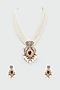 Two-Tone Finish Pearl & Ruby Stone Long Necklace Set