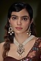 Featuring a two-tone finish long necklace studded with pearls, kundan polki and ruby stones, set in mixed metal. It is paired with a matching pair of earrings.