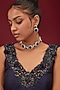 Featuring a white finish necklace studded with blue stones and cubic zirconia, set in copper. It is paired with a matching pair of earrings. Perfect wear for a festive or wedding occasion.