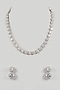Featuring a white gold finish necklace studded with cubic zirconia, set in mixed metal. It is paired with a matching pair of earrings. Perfect for wedding celebrations, festive soirees or cultural gatherings adding a regal charm to every look.