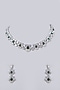 Featuring a white gold finish necklace studded with diamonds and emerald cubic zirconia, set in copper. It is paired with a matching pair of earrings. Add a touch of sparkle to your ensemble, perfect for wedding ceremonies or festive celebrations.