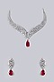 White Gold Finish Diamond & Red Cubic Zirconia Necklace Set
