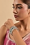 Featuring a pair of white gold finish bracelet studded with green cubic zirconia, set in mixed metal. Perfect for wedding celebrations, festive soirees or cultural gatherings adding a regal charm to every look.