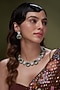 Featuring a white gold finish necklace studded with mint stones and cubic zirconia, set in mixed metal. It is paired with a matching pair of earrings.