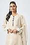 Featuring a beige kurta in china dupion base. It is paired with pants and an organza dupatta. Accentuate it with dangler earrings and heels for a festive occasion or pooja ceremony.