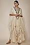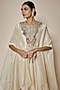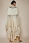 Featuring a beige handkerchief cape in dupion base with embroidery. It is paired with satin pants. Accentuate with statement jewellery and heels for a wedding or engagement ceremony.