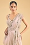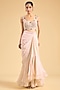 Featuring a beige draped pick-up skirt in silk and organza base with embroidery. It is paired with a blouse, a drape dupatta and a belt. Accentuate it with statement jewellery, a clutch bag and strappy heels for sangeet ceremonies.