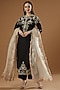 Featuring a black long straight kurta in dupion base with thread and pearl work. It is paired with matching satin pants and an organza dupatta having pearl work.