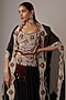 Featuring a black tiered lehenga in organza and silk base. It is paired with an organza butterfly cape having thread and sequins work, including a dupion blouse. Accentuate it with statement jewellery and heels for a bridal look.