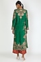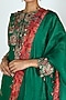Featuring a bottle green kurta in silk base with thread work embroidery. It is paired with contrasting palazzo pants and an organza dupatta having print detailng.
