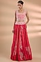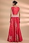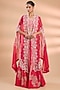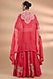 Featuring a gajri pink butterfly cape in organza base with pearl work. It is paired with an embroidered blouse and a chanderi embroidered skirt. Accentuate it with dangler earrings and heels for a wedding, reception, haldi, sangeet or engagement ceremony.