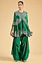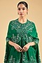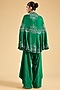 Featuring a green cape in china dupion base with mirror work. It is paired with satin pants. Accentuate it with statement jewellery, a clutch bag and strappy heels for mehendi ceremonies.