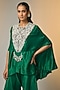 Featuring a green cape in dupion base with embroidery. It is paired with satin pants. Accentuate it with dangler earrings and heels for a festive occasion, family gathering or pooja ceremony.