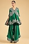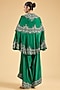 Featuring a green cape in dupion silk base. It is paired with satin pants. Accentuate it with statement jewellery, a clutch bag and strappy heels for mehendi ceremonies.