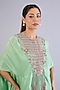 Featuring a green cape in dupion silk base with thread and zari work. It is paired with satin pants. Accentuate it with block heels and statement earrings for elite festive gatherings.