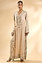 Featuring an ivory dress in dupion silk base. It is paired with a belt. Accentuate it with antique gold statement earrings, a sleek metallic clutch and elegant heels for a stylish ensemble, ideal for festive gatherings, wedding functions or celebratory evenings.