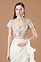 Featuring an ivory draped saree in dupion and organza base. It is paired with a matching silver blouse and a belt having embroidery.