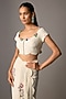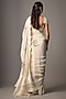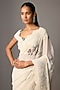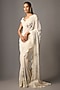 Featuring an ivory saree in silk base with thread and pearl embroidery. It is paired with an embroidered blouse. Accentuate it with dangler earrings and heels for a festive occasion, wedding or engagement ceremony.
