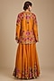 Featuring a mango yellow short kurta in dupion silk base with kashmiri work. It is paired with an organza sharara and dupatta. Style it with statement chandbali earrings, metallic heels, and a sleek clutch for a refined look. Perfect for festive gatherings, wedding functions, family celebrations, or evening occasions.