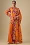 Featuring an orange short kurta in dupion silk base with kashmiri work. It is paired with pants and an organza dupatta. Accentuate it with statement earrings and block heels for a festive occasion or pooja ceremony.
