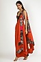 Orange Embroidered Draped Saree Set
