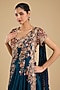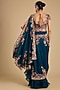 Featuring a peacock blue draped saree in dupion silk base with embroidery. It is paired with an embroidered blouse. Accentuate it with polki or meenakari jewellery and embellished heels for a sangeet or wedding ceremony.