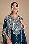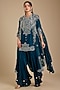 Peacock Blue Dupion Silk Mirror Work Kurta Set