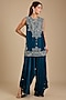 Featuring a peacock blue short kurta in dupion silk base with mirror work. It is paired with satin pants and an organza dupatta. Style it with statement chandbali earrings, metallic heels, and a sleek clutch for a refined look. Perfect for festive gatherings, wedding functions, family celebrations, or evening occasions.