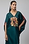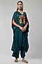 Featuring a peacock blue long kaftan in silk base with embroidery. It is paired with pants. Accentuate it with dangler earrings and heels for a festive occasions or family gathering.