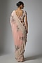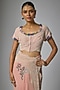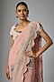 Featuring a pink saree in chiffon base. It is paired with a blouse. Accentuate it with statement jewellery and heels for a wedding or sangeet ceremony.