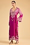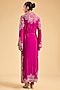Featuring a pink long dress in dupion silk base with mirror work. It is paired with an inner. Accentuate it with statement jewellery, a clutch bag and strappy heels for sangeet ceremonies.