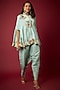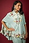 Featuring a powder blue cape in china dupion blouse. It is paired with pants. Accentuate with dangler earrings and heels for a festive or sangeet ceremony.