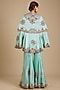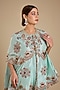 Featuring a powder blue cape in dupion base. It is paired with silk and organza gharara. Style it with statement chandbali earrings, metallic heels, and a sleek clutch for a refined look. Perfect for festive gatherings, wedding functions, family celebrations, or evening occasions.