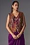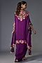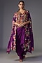 Featuring a purple butterfly cape in dupion base with kashmiri and thread work. It is paired with a waistcoat having patchwork and a pick-up crushed dupion skirt. This set is crafted with the finest materials and will accentuate your wedding or engagement look.