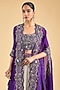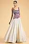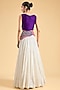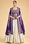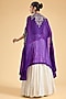 Featuring a purple butterfly cape in organza base with embroidery. It is paired with a blouse and an ivory chanderi skirt. Accentuate it with statement jewellery, a clutch bag and strappy heels for sangeet ceremonies.