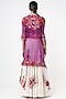 Featuring a rani pink cape in chanderi base with thread work. It is paired with a matching blouse and an off-white skirt.