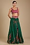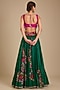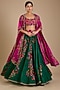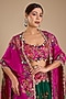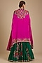 Featuring a rani pink butterfly cape in silk base with kashmiri work. It is paired with a rani pink dupion blouse and green satin organza skirt. Style it with statement chandbali earrings, metallic heels, and a sleek clutch for a refined look. Perfect for festive gatherings, wedding functions, family celebrations, or evening occasions.