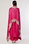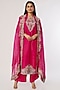 Featuring a rani pink straight kurta in silk base with thread and pearl work. It is paired with matching pants and an organza embellished dupatta.