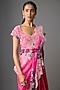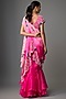 Featuring a rani pink skirt saree in silk and organza base with embroidery. It is paired with a blouse, a drape dupatta and belt. Accentuate it with heels and statement earrings for festive occasion, sangeet or cocktail ceremonies.