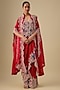 Red Dupion Silk Pearl Work Butterfly Cape Set