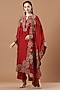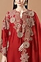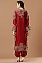 Featuring a red straight kurta in chanderi base with thread embroidery. It is paired with matching pants and an organza dupatta.