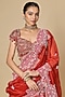 Featuring a red lehenga in silk base with mirror work. It is paired with an embroidered blouse and an organza mirror work dupatta. Accentuate it with zircon jewellery and heels for a wedding or engagement ceremony.