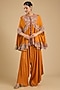 Rust Orange Dupion Silk Mirror Work Cape Set
