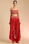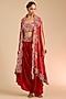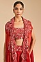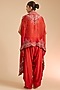 Featuring a rust orange butterfly cape in silk and satin base with mirror embroidery. It is paired with an embroidered blouse and satin pants. Accentuate it with kundan earrings, embellished heels and a clutch bag for a complete look. Perfect wear for festive occasions, cultural events or sangeet ceremony.