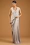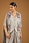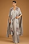 Featuring a steel grey butterfly cape in dupion base with dori work. It is paired with an embroidered waistcoat and a silk pick-up skirt. Accentuate it with zircon or swarovski jewellery and embellished heels for a wedding or sangeet ceremony.