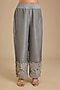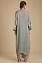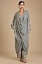 Featuring a steel green draped dress in silk base. It is paired with an inner and pants. Style it with statement earrings, metallic heels, and a sleek clutch for a refined look. Perfect for festive gatherings, wedding functions, family celebrations, or evening occasions.