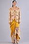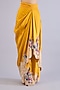 Featuring a yellow jacket in dupion silk base with thread and pearl work. It is paired with a pearl work pick-up skirt. Accentuate it with block heels and statement earrings for elite festive gatherings.