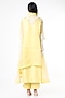 Featuring a yellow cape in organza base floral booti work. It is paired with a matching dupion kurta and pants.